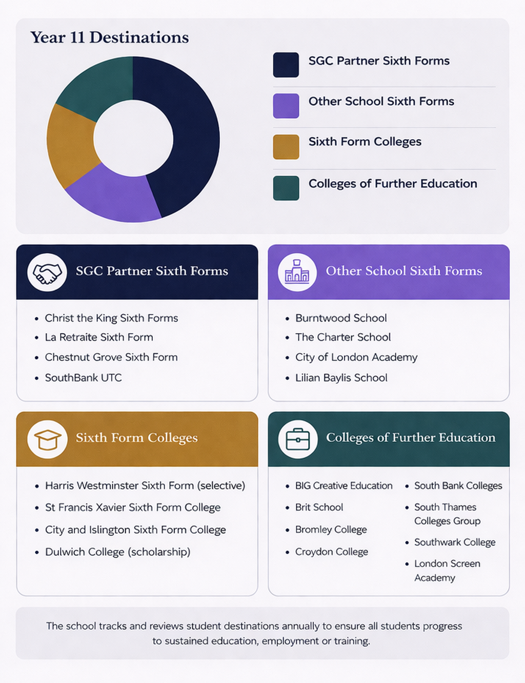 At Saint Gabriel’s College, we prepare students for successful progression into post-16 education, training and employment. The Class of 2025 progressed to a range of high-quality destinations, including sixth forms, colleges and apprenticeships.
